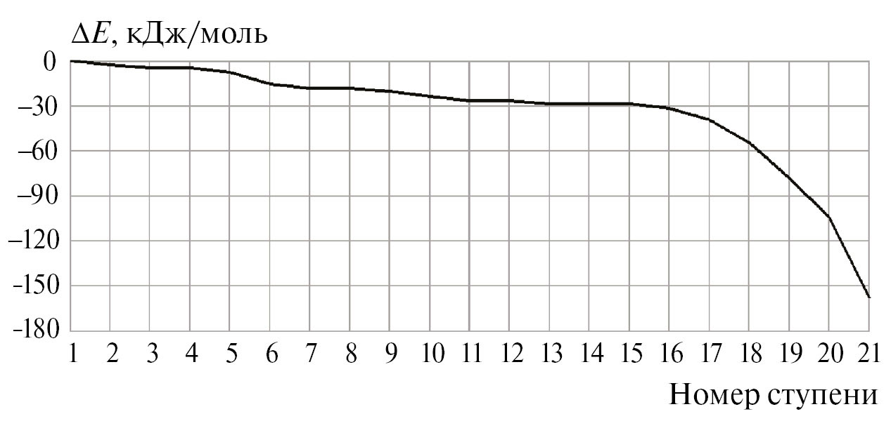 Рис. 6. Изменение общей энергии (ΔE) вдоль координаты реакции взаимодействия комплексного катализатора AlCl2C2H5–фенол (Cα) с 2,3,3-триметилбутеном-1.