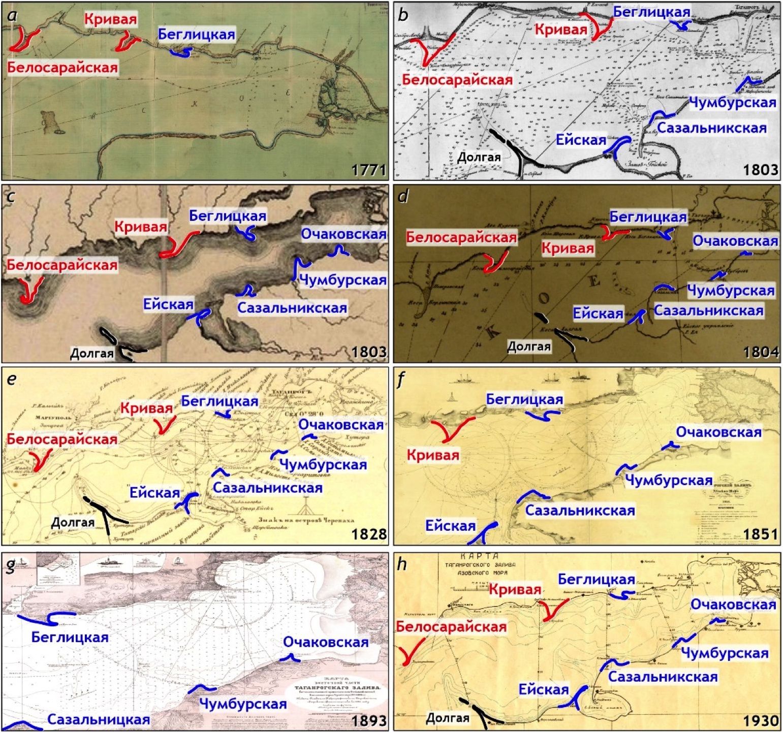 Рисунок 2 наглядно демонстрирует, что указанные выше особенности морфологического облика Таганрогского залива являются устойчивыми по крайней мере последние 250 лет.