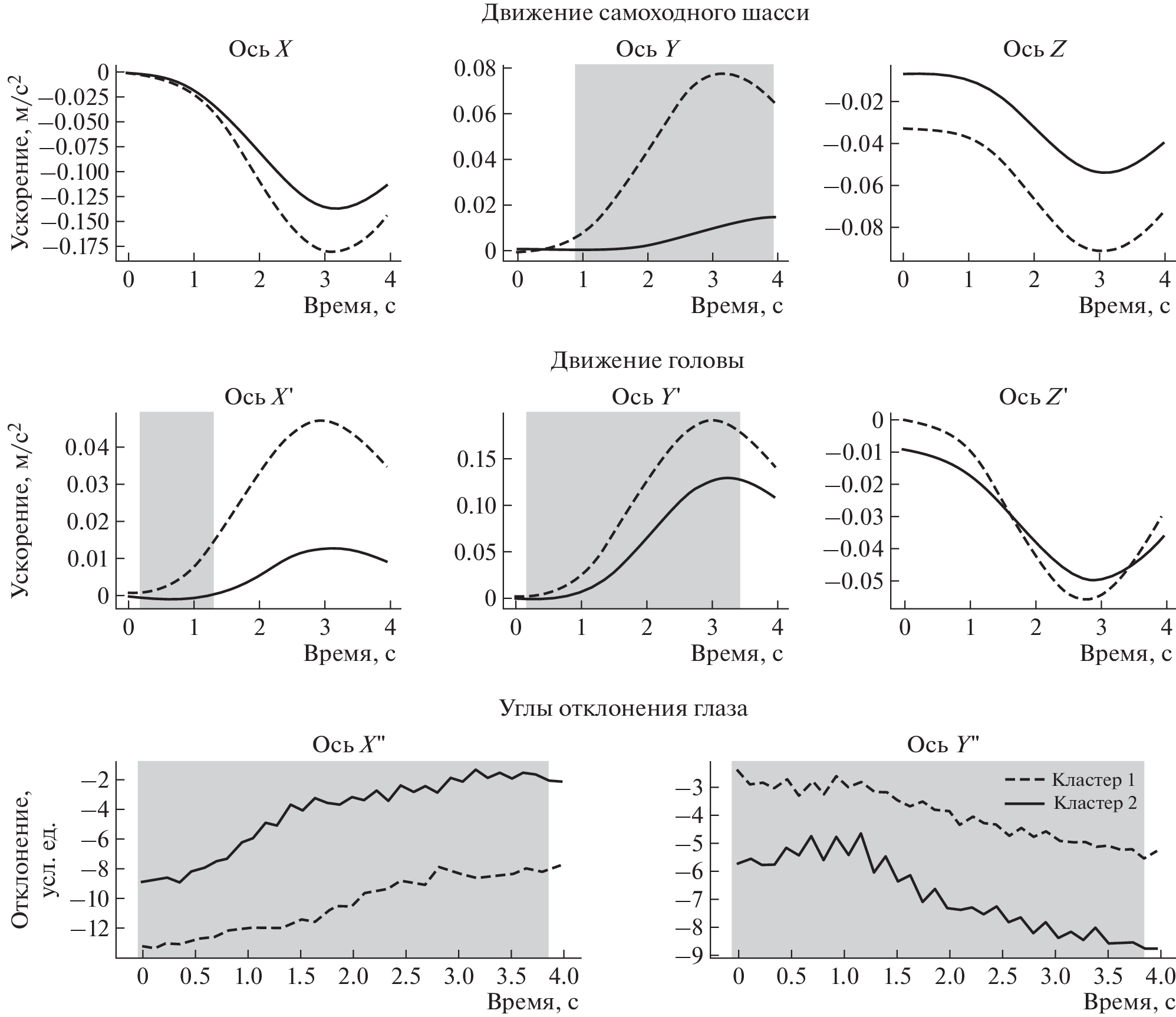 The article presents the results of a study of the parameters of human eye movement when using an oculographic interface to control a self-propelled chassis. In the course of the experiment, it was shown that from race to race, the time spent by the subjects on one race was reduced, the number of errors and the number of subjects who did not successfully complete their races decreased. On the basis of cluster analysis, individual typological features of the reaction of eye movement to the movement of the user’s head during the execution of the main commands for controlling the self-propelled chassis were revealed. It is shown that when the self-propelled chassis is moving, the generation of the “forward” and “backward” commands by the optical-oculographic interface is generally carried out according to the scenario common for users, and does not require correction when controlling the self-propelled chassis. At the same time, the generation of turn commands is a more individual process, which is associated both with the calibration of the device and with the individual position of the user’s head and eyes and, therefore, requires more careful control when using oculographic interfaces.