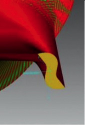 Рис. 4. Результаты обработки ротора с помощью специальной стратегии обработки при различных входных параметрах: (а) – подрезание отсутствует; (б), (в) – отклонение формы от заданной в результате подрезания