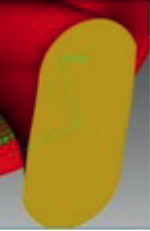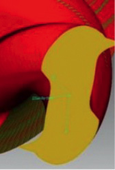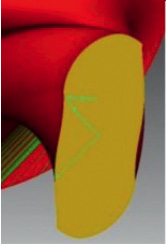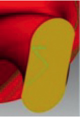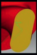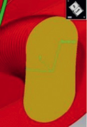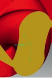 Постановка задачи. Предложенная стратегия обработки винтовых поверхностей цилиндрической фрезой на 4-координатных станках с ЧПУ реализуется с помощью разработанного алгоритма, описывающего движение фрезы и заготовки в параметрическом виде. Работа алгоритма реализована в виде программы, на входе получающей параметры обрабатываемых поверхностей, а на выходе предлагающей программу управления станком, описывающую координаты заготовки и инструмента в каждый момент времени (G-код). Однако как показала практика, при некоторых заданных параметрах обработки (диаметр сечения, шаг, эксцентриситет винтовой поверхности и диаметр фрезы) возникает подрезание сформированного профиля детали использующимся инструментом (рис. 4).