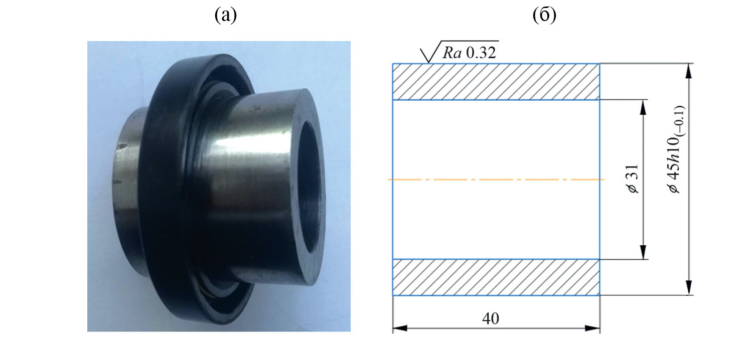 Рис. 2. Образцы для стендовых испытаний: (а) – внешний вид образцов; (б) – эскиз втулки