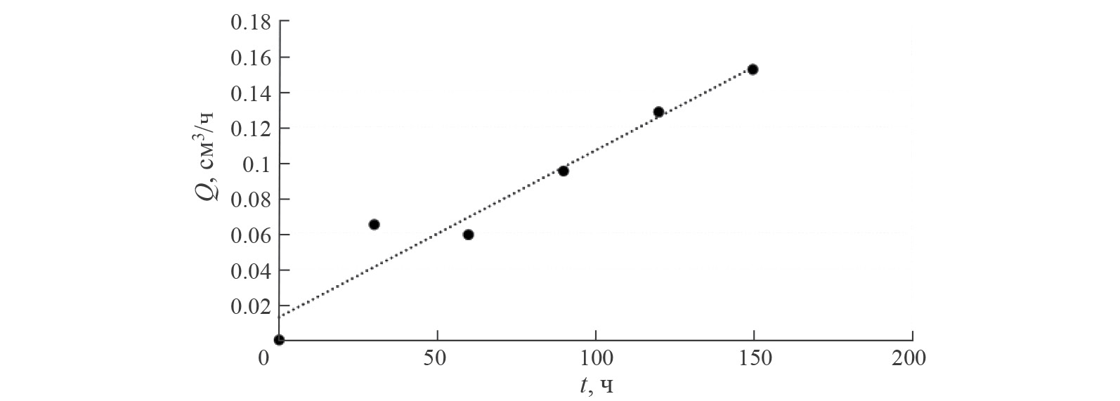 Q, см3/ч | 0 | 0.065 | 0.059 | 0.095 | 0.128 | 0.152 |
