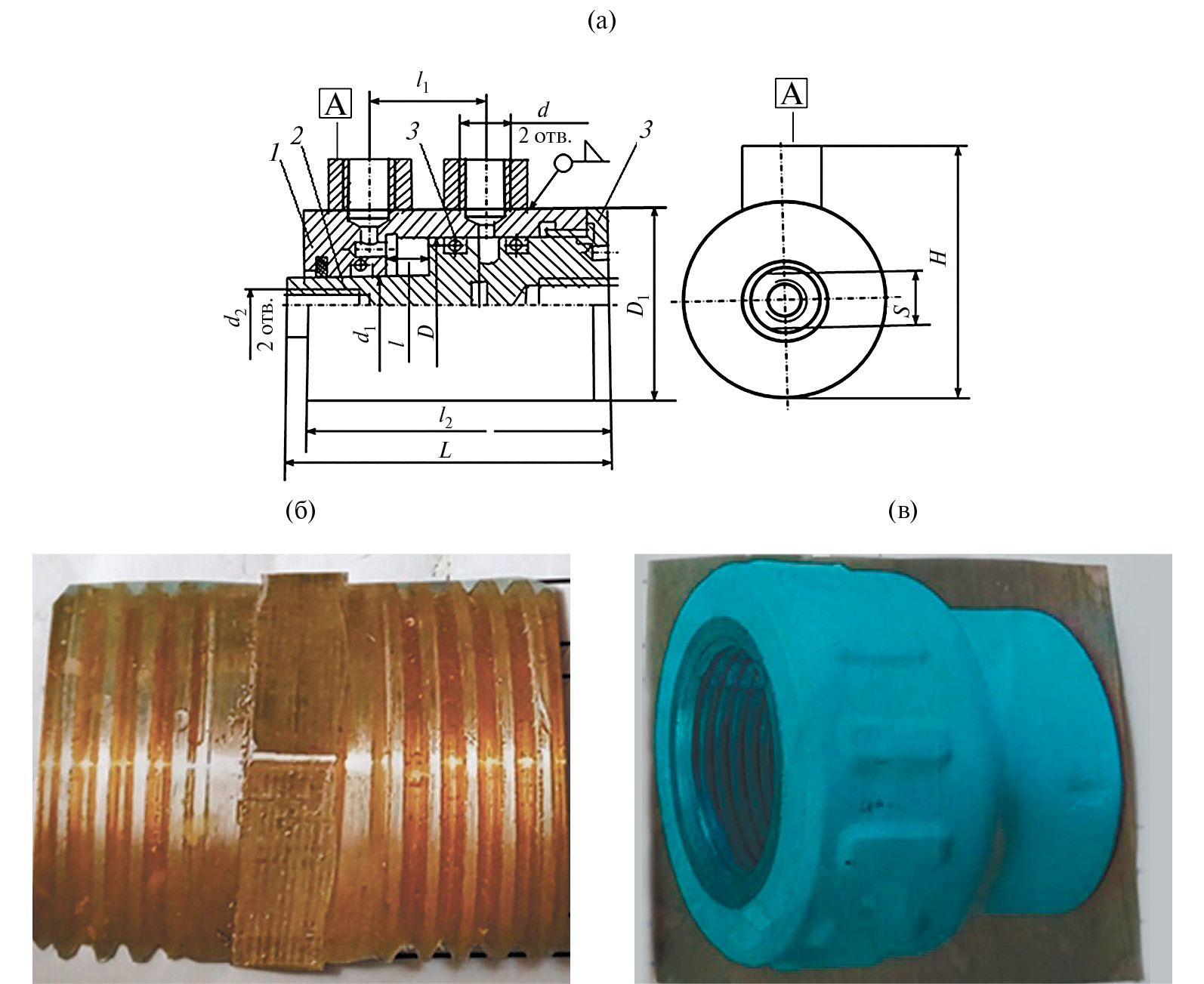 Однако с увеличением толщины клеевой прослойки резко падает общая прочность соединения на срез. Поэтому наибольшее распространение при соединении металлических деталей и арматуры с пластмассами получили резьбовые конструкции. Известно, что соединение пластмассы в металлической арматуре с резьбой является защитным средством для арматуры, а также делает ее более долговечной при работе в различных условиях. С этой точки зрения требуется учитывать различные механические свойства различных материалов при расчете резьбы [2]. Было определено, что резьба должна быть нагружена равномерно по всей длине резьбовой части. Выбор материала, разработка режимов литья, применение пресс-формы для литья с прессованием, разработка температур для среза влияют на точность проведения исследования. В зависимости от оптимальной длины резьбы получены более высокие значения предела прочности соединения на срез.
