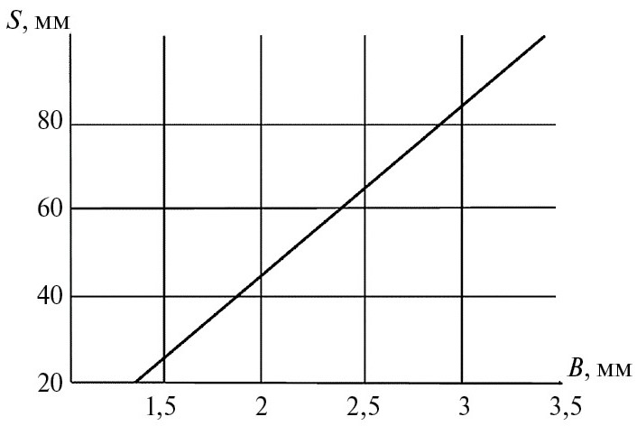 Рис. 6. Определение минимальных толщин стенок детали на термопластичных пластмассах: В – толщина детали; S – длина пути массы.
