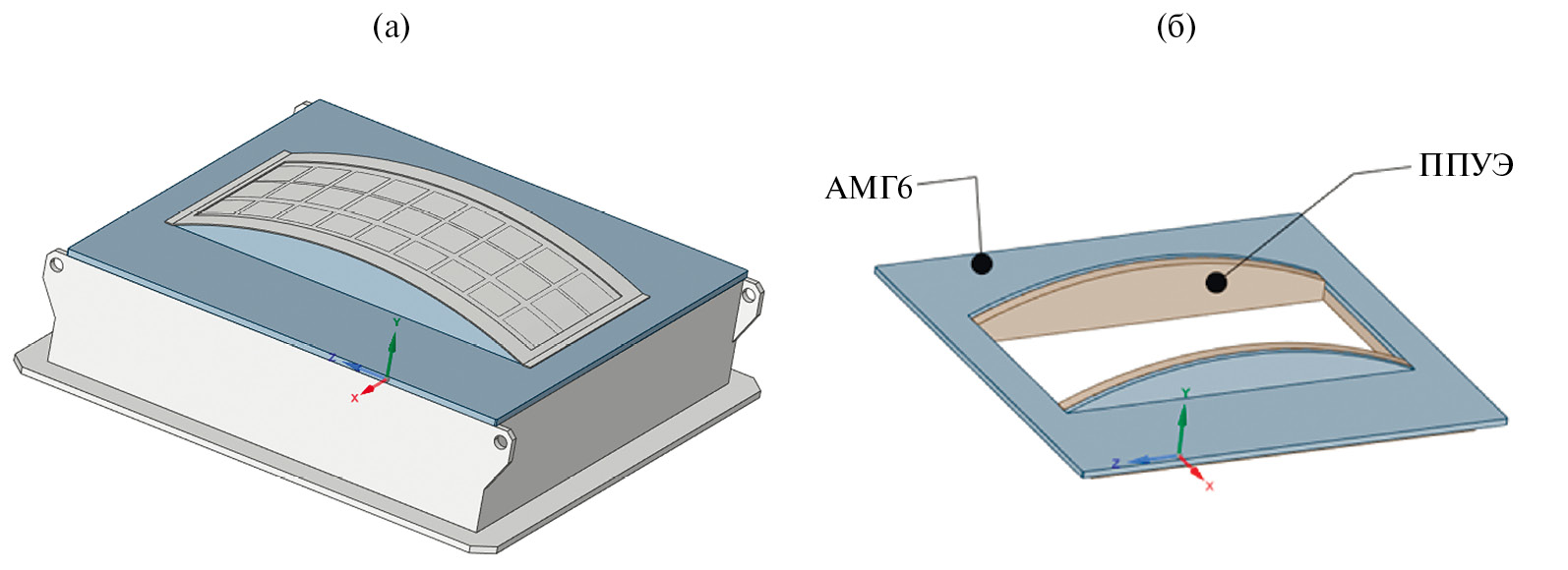 Для решения задачи нахождения звукоизоляционных характеристик представленной конструкции ГО предполагалось использование АРС, в которой устанавливается экспериментальная оснастка, представляющая из себя металлический короб, с экспериментальным окном, в которое помещается испытуемый образец (рис. 2).