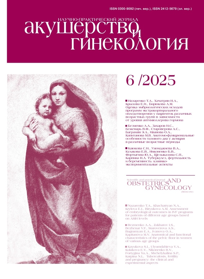 Materials and methods: Observational cross-sectional study was carried out at the Central Research Institute of Tuberculosis. The study included 164 patients, who were divided into 2 groups. Group 1 included 82 pregnant women, who had TB of the respiratory organs. Group 2 included 82 non-pregnant women, who had TB of the repiratory organs. The experimental research was conducted using 40 BALB/c female mice. The mice were divided into 2 groups. Group 1 included 20 pregnant mice infected with Mtb. Group 2 included 20 pregnant mice, but not infected with Mtb.