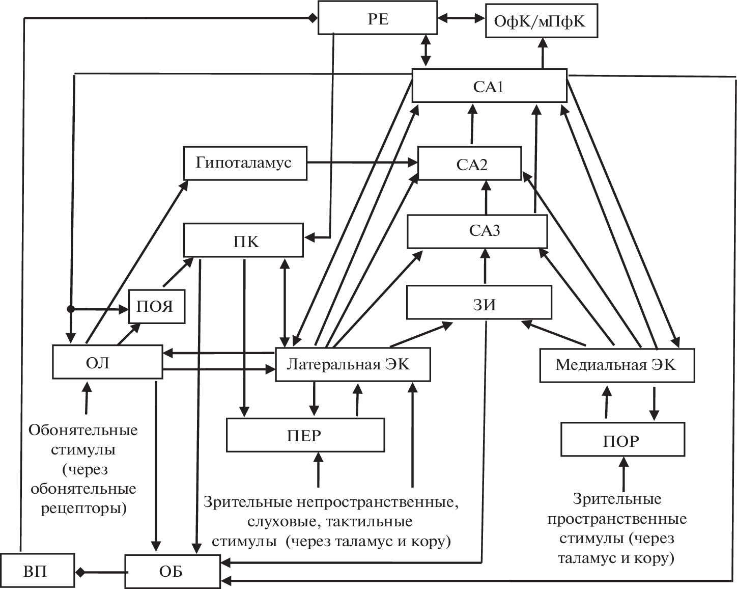 - Biella G., de Curtis M. Olfactory inputs activate the medial entorhinal cortex via the hippocampus // J. Neurophysiol. 2000. V. 83. № 4. P. 1924. https://doi.org/10.1152/jn.2000.83.4.1924