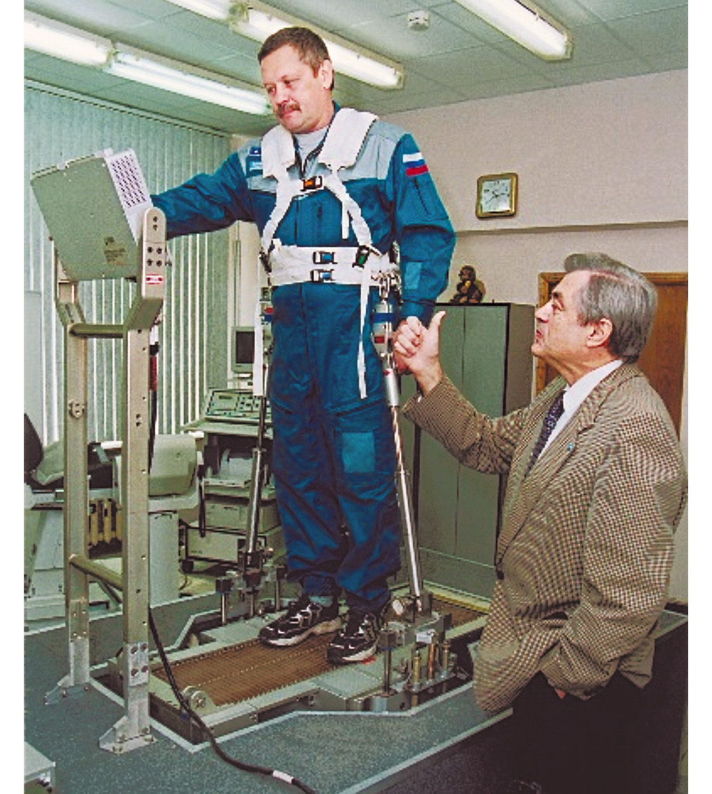 Антиортостатическая гипокинезия (АНОГ) воспроизводила эффекты длительного влияния невесомости на основные физиологические системы человека. С 1972 по 1987 г. в ИМБП было проведено 14 экспериментов с АНОГ продолжительностью от 7 до 370 суток. Наиболее масштабным из них был годовой эксперимент, проведенный под руководством А.И. Григорьева в 1987–1988 гг., в котором была выполнена обширная программа научных исследований, получены новые данные о влиянии гипокинезии на основные системы организма и разработаны оригинальные подходы к лечению остеопороза и коррекции двигательных и сердечно-сосудистых расстройств [18, 19].