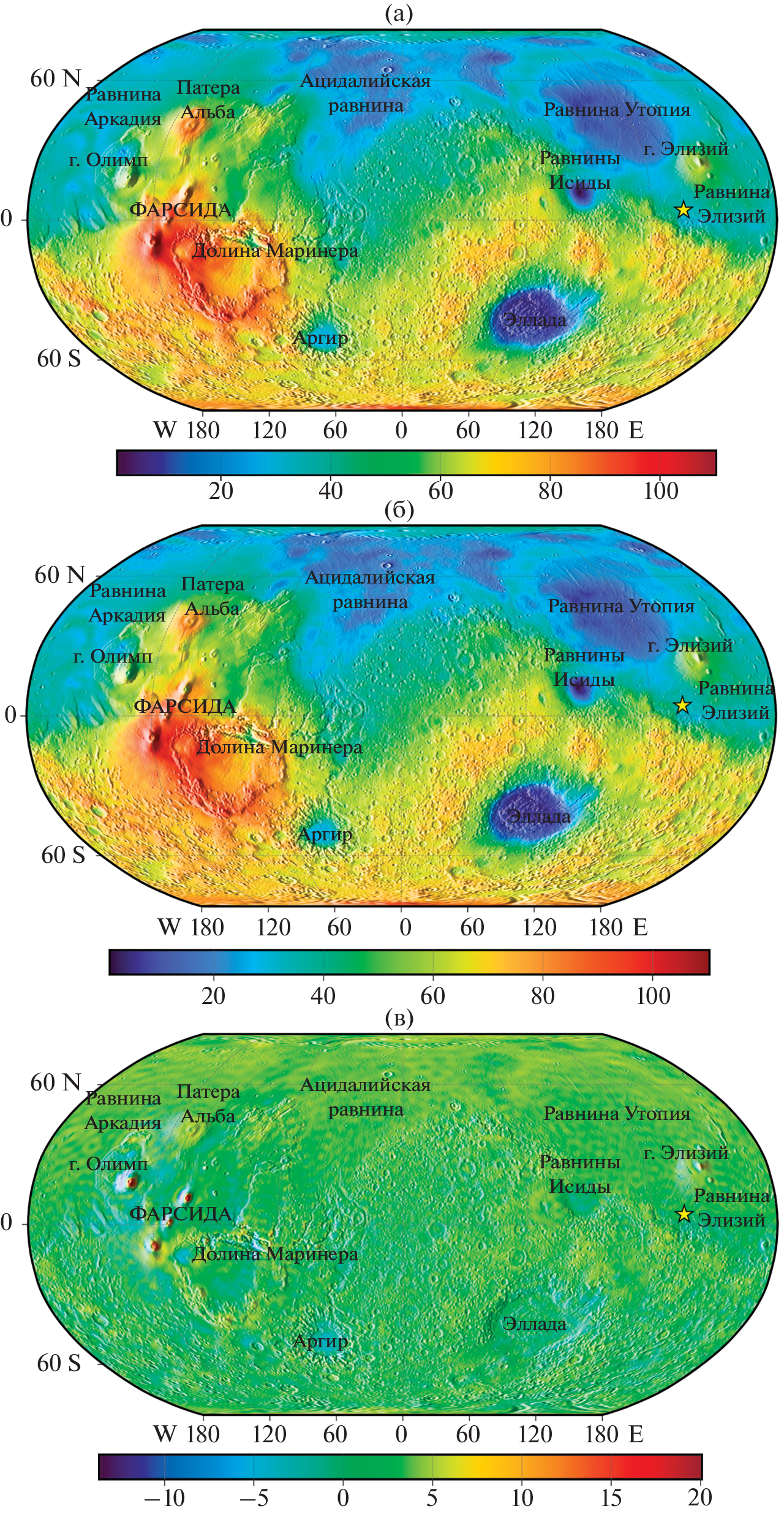 - McGovern P.J., Solomon S.C., Smith D.E., Zuber M.T., Simons M., Wieczorek M.A., Phillips R.J., Neumann G.A., Aharonson O., Head J.W. Localized gravity/topography admittance and correlation spectra on Mars: implications for regional and global evolution // J. Geophys. Res. 2002. V. 107. id. 5136.