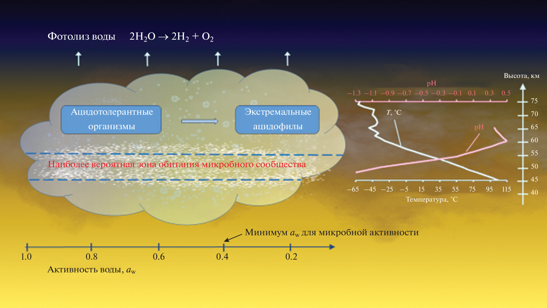 - Hallsworth J.E., Koop T., Dallas T.D., Zorzano M.-P., Burkhardt J., Golyshina O.V., Martin-Torres J., Dymond M.K., Ball P., McKay C.P. Water activity in Venus’s uninhabitable clouds and other planetary atmospheres // Nature Astronomy. 2021. V. 5. P. 665–675. https://doi.org/10.1038/s41550-021-01391-3
