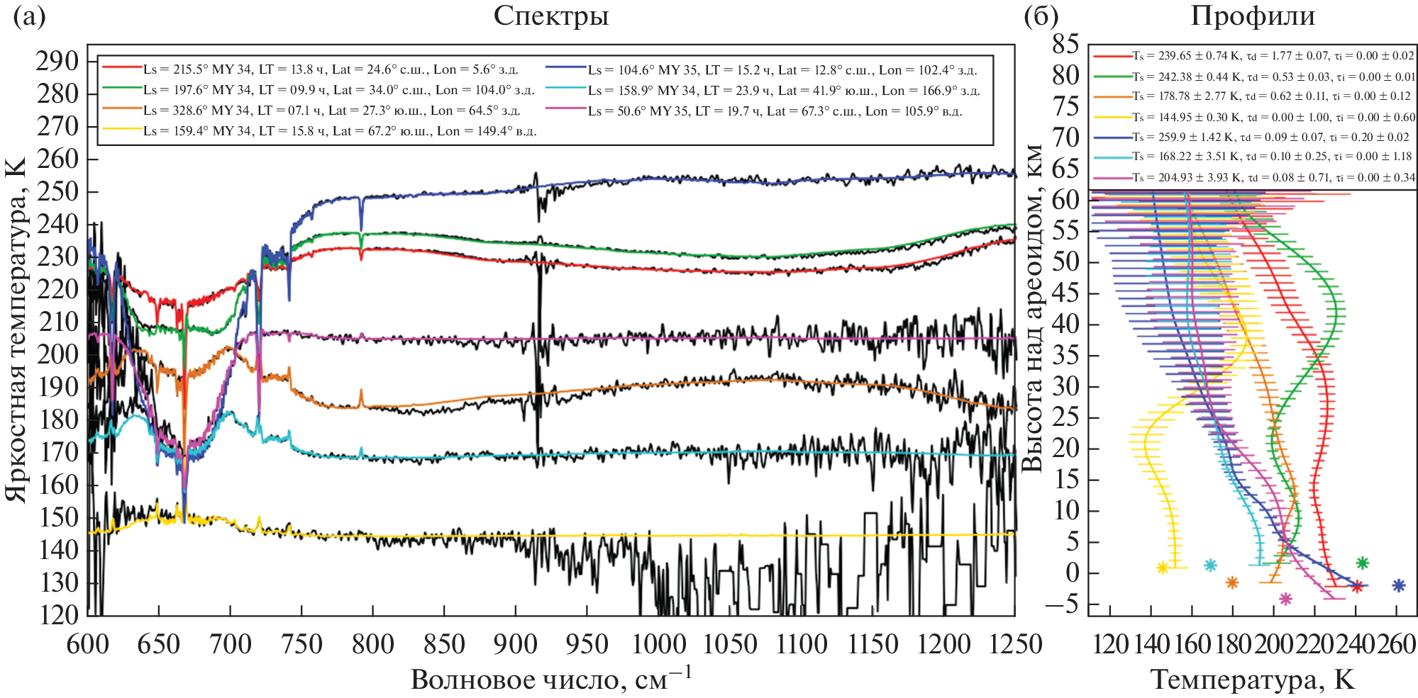 - Conrath B.J., Pearl J.C., Smith M.D., Maguire W.C., Christensen P.R., Dason S., Kaelberer M.S. Mars Global Surveyor Thermal Emission Spectrometer (TES) observations: Atmospheric temperatures during aerobraking and science phasing // J. Geophys. Res.: Planets. 2000. V. 105. № E4. P. 9509–9519. https://doi.org/10.1029/1999JE001095