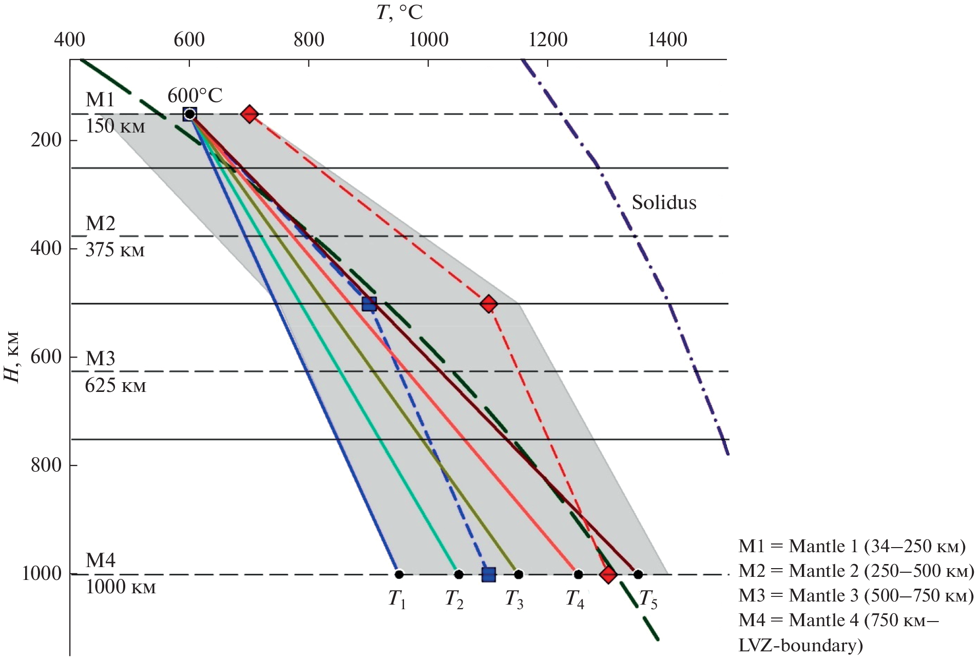 - Кусков О.Л., Кронрод В.А., Прокофьев А.А. Термическая структура и мощность литосферной мантии Сибирского кратона по данным сверхдлинных сейсмических профилей Кратон и Кимберлит // Физика Земли. 2011. № 3. С. 3–23.