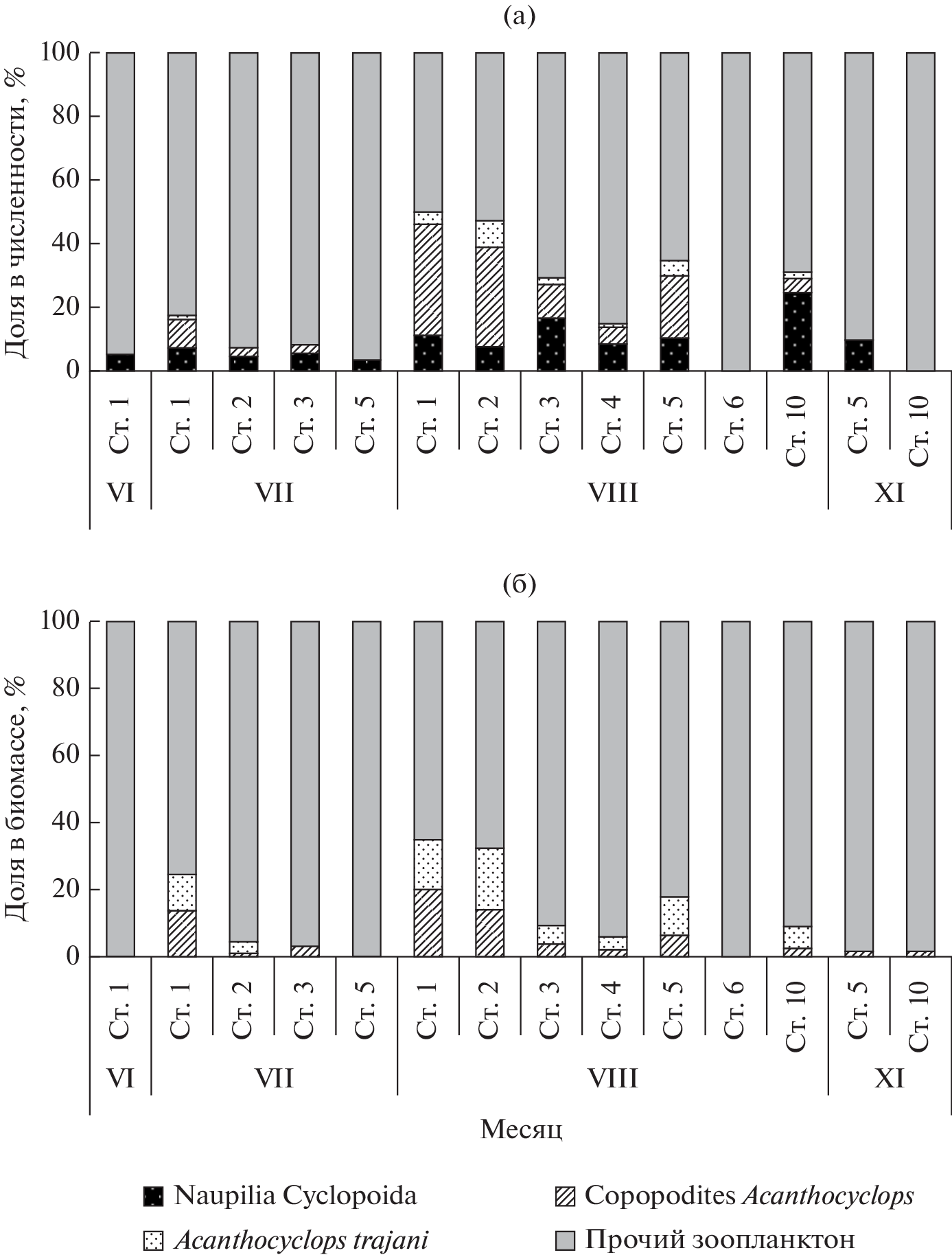 In 2021 Acanthocyclops trajani Mirabdullayev et Defaye, 2002, was first record in the Vistula Lagoon of the Baltic Sea. This species quickly spread throughout the water area of the Lagoon. In summer, A. trajani reached its maximum development (up to 92 thousand ind./m3, 2.4 g/m3), was a dominant and forming a particularly high proportion of zooplankton in the most polluted, desalinated and eutrophicated eastern part of the Vistula Lagoon. As a result of predatory feeding, A. trajani exerted significant pressure on the planktonic communities of the Lagoon; its diet in August exceeded the production of non-predatory zooplankton. The pressure on zooplankton increased even more due to the mass development of Cercopagis pengoi (Ostroumov, 1891), with which the new species entered into competitive relationships. The main reasons for the successful naturalization of A. trajani in the Vistula Lagoon, apparently, include some features of its biology, the structure of the plankton community with the presence of unoccupied trophic niches, the continued eutrophication this waterbody, decreasing the pressure of the invasive mollusk Rangia cuneata (G.B. Sowerby, 1831), as well as local climate warming, noted in recent decades.