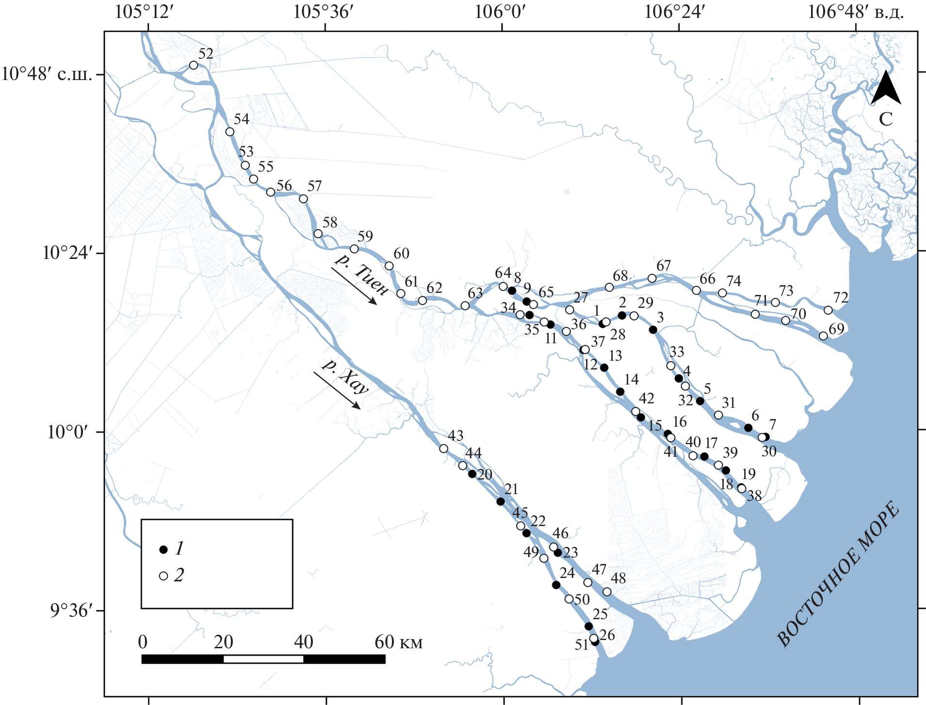 - Nguyen A.D., Savenije H.H.G., Pham D.N., Tang D.T. 2008. Using salt intrusion measurements to determine the freshwater discharge distribution over the branches of a multi-channel estuary: The Mekong Delta case // Estuarine, Coastal Shelf Sci. V. 77. № 3. P. 433. https://doi.org/10.1016/j.ecss.2007.10.010