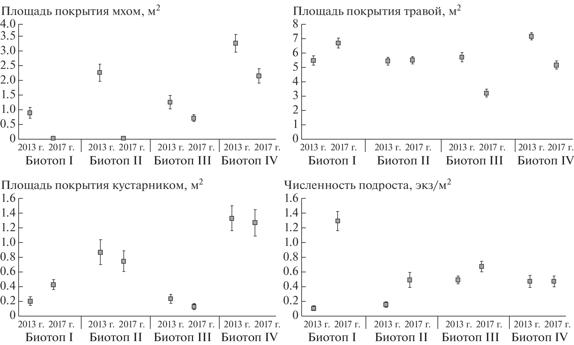 The environmental preferences of the bank vole were studied in the protected area of the Middle Urals in different biotope conditions formed as a result of the consequences of natural catastrophic events. According to the abundance of the population, the “success” of the existence of the species in four biotopes with varying degrees of disturbance by wind and pyrogenic effects was assessed. A statistically highly significant level of differences between the compared biotopes was shown for six microenvironmental variables that assess the food-protective conditions of animal habitats. In general, the biotopic variability turned out to be higher than the chronographic (interannual) variability. Over the long period of the study, the bank vole prevailed in numbers in the undisturbed biotope, which was distinguished among the studied biotopes by high values of microenvironmental indicators that assess mainly the food resources of animal habitats: the coverage of areas by shrubs and herbaceous vegetation. Habitat conditions in the biotope undisturbed by natural catastrophic factors are most consistent with the environmental preferences of the bank vole.