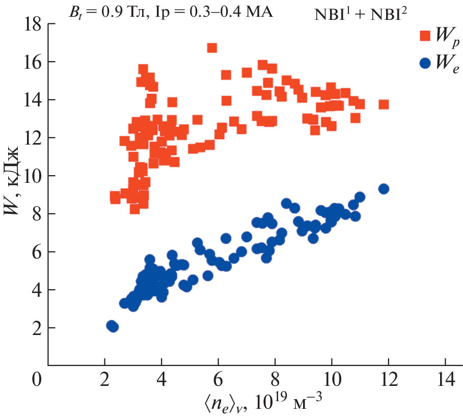field up to 0.9 T and a plasma current of 0.3–0.4 MA in a mode with auxiliary heating by two atomic injectors