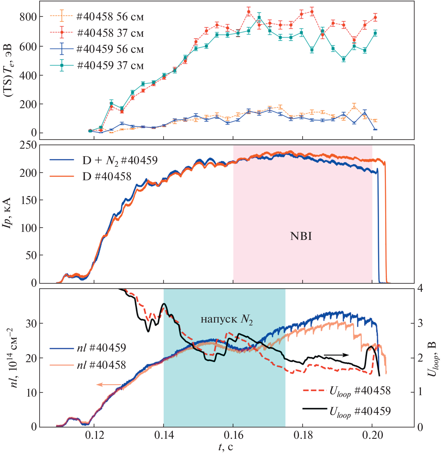 neutral beam injection. During the nitrogen seeding, a substantial decrease in electron temperature near the