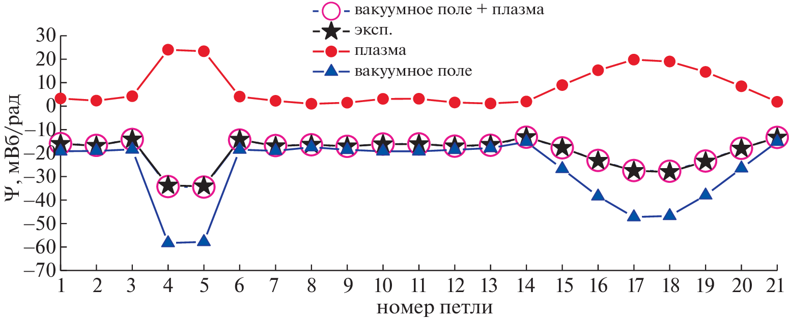 measurements of the poloidal magnetic flux by means of toroidally closed loops. The results of computation