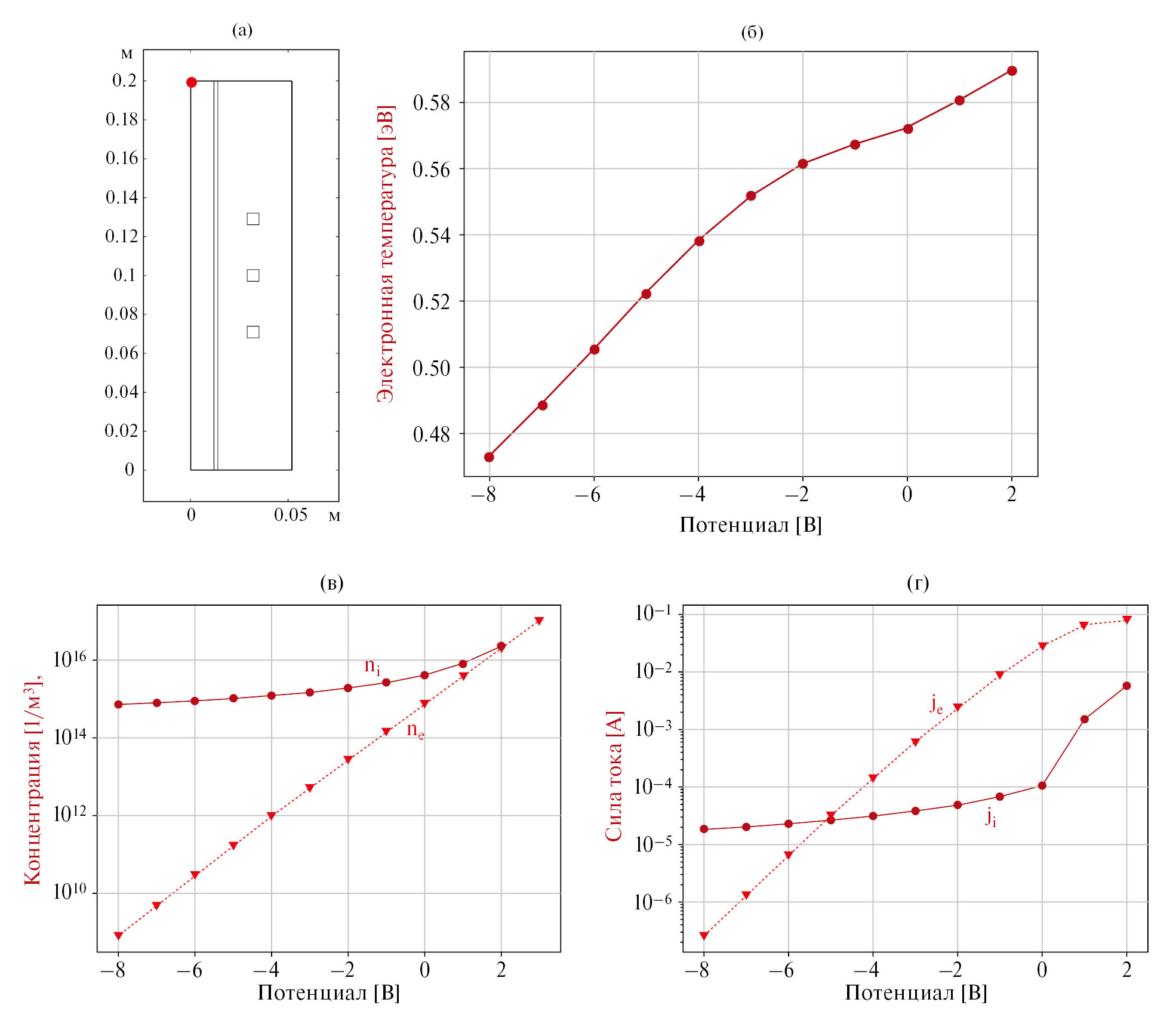 Зависимость параметров плазмы от приложенного потенциала уже исследовалась во множестве публикаций.