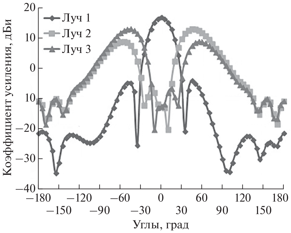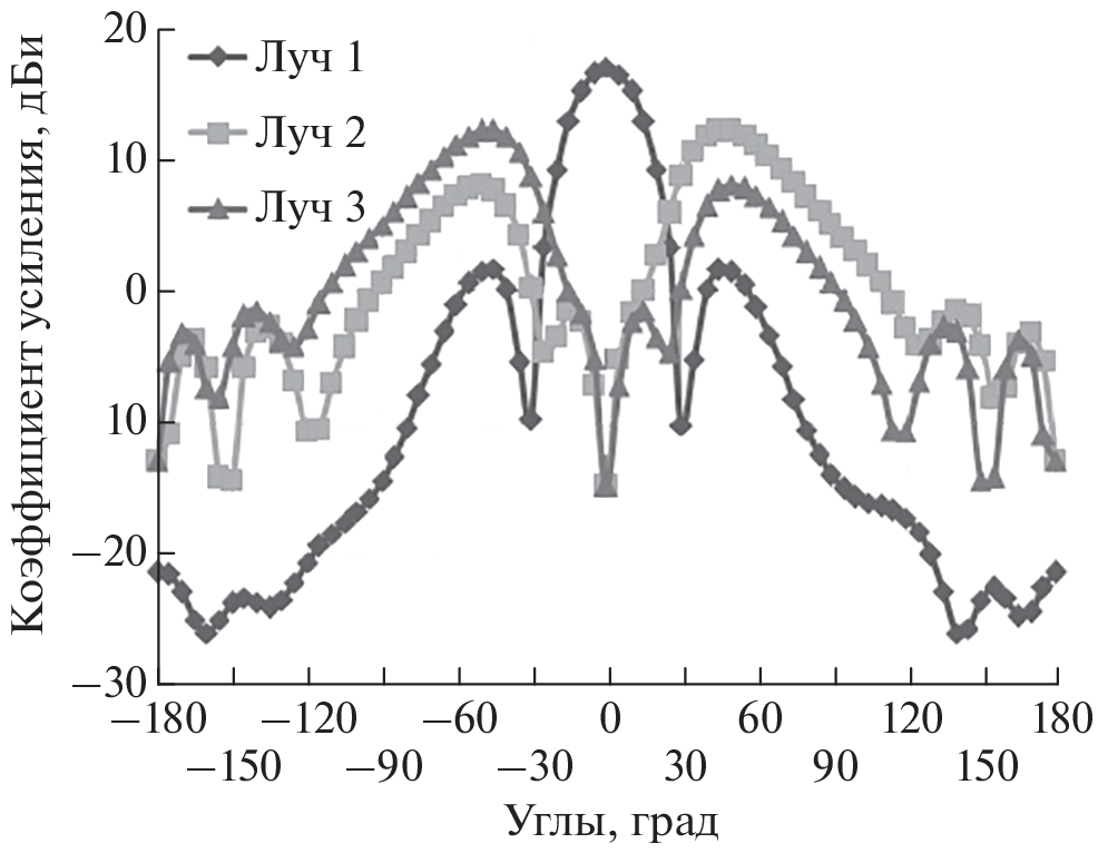 A transceiver has been designed for the digital generation of a multibeam radiation pattern in this work. The transceiver consists of a transmitter and receiver, both are integrated on a single printed circuit board. The transceiver provides the formation of multiple beams in the far field of the radiation zone. The experimental measurement of the multibeam radiation pattern of a phased antenna array with a digital pattern synthesis was carried out.