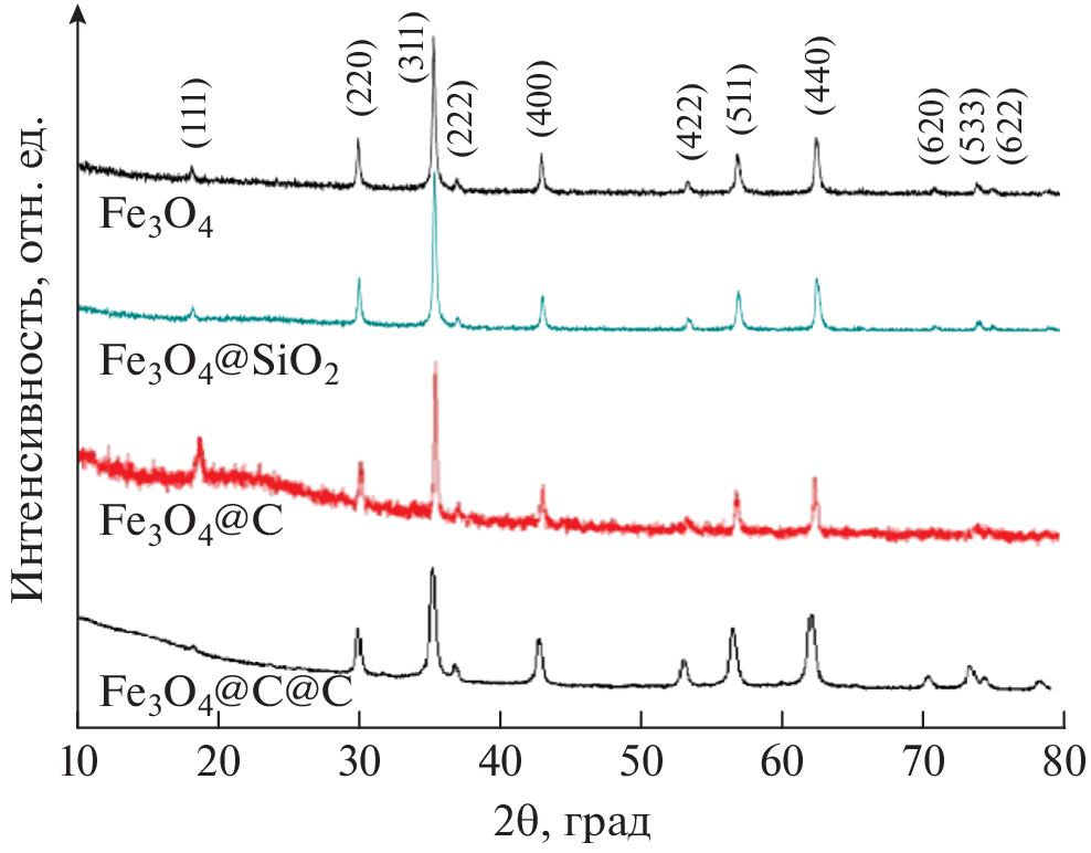 Adsorption of organic dyes by Fe3O4@C, Fe3O4@C@C, Fe3O4@SiO2 magnetic nanoparticles