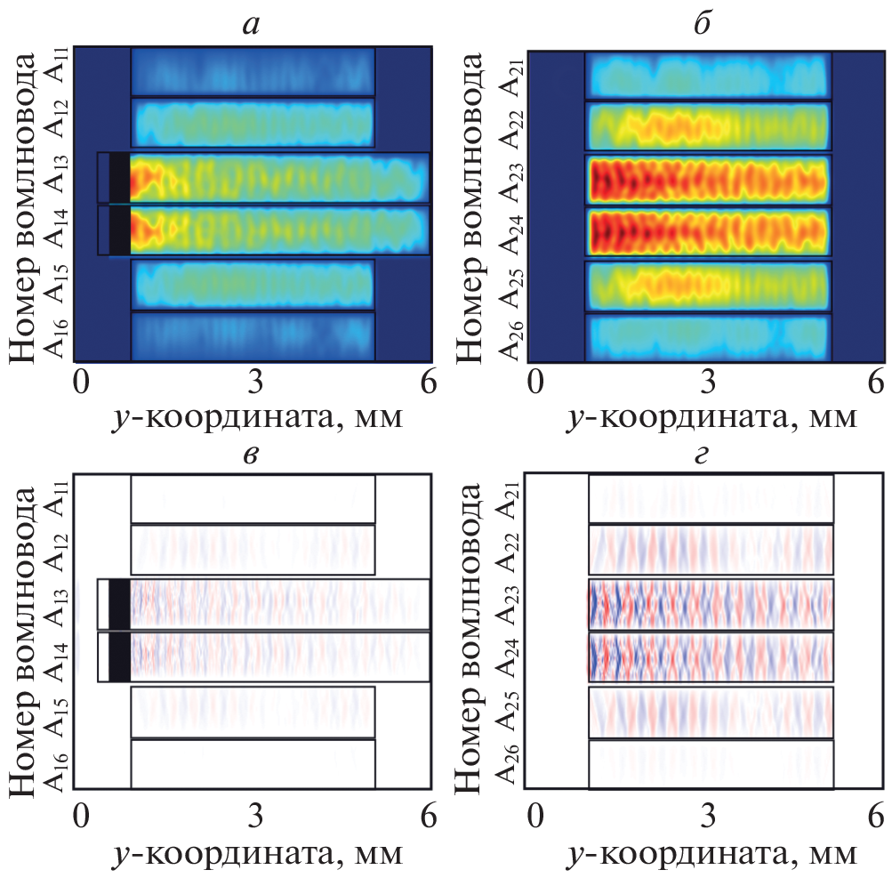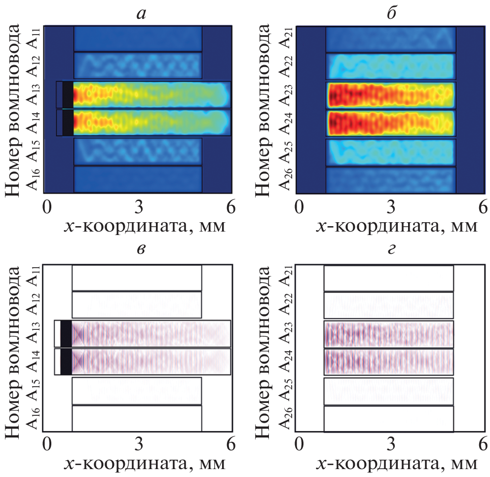 Numerical micromagnetic modeling used to study the modes of propagation of spin waves and processes of power transfer in the considered arrays of microwaves in the configuration corresponding to excitation in two central channels of one of the layers of surface and inverse bulk magnetostatic spin waves is conducted. It is shown that the proposed structure performs the functions of spatial-frequency signal selection, the efficiency of which depends on the mutual orientation of the submagnetization field and the direction of wave propagation.