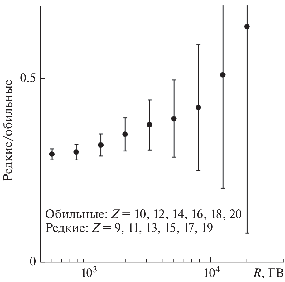 During the processing of the data obtained in the space experiment NUCLEON, results were obtained that were of significant astrophysical importance. Using the GALPROP package, the inverse problem of the propagation of cosmic rays from the source (close Supernovae) to the observer was solved, a component spectrum was calculated at the source. It was shown that a systematic change in the power index (slope of the spectrum) was observed at the source, which can be interpreted as incomplete ionization of cosmic rays now of acceleration at the front of the supernova shock wave. Magnetic rigidity spectra analysis was applied for nitrogen nuclei fluxes and the total spectrum of rare nuclei with odd charges from 9 to 19 (F, Na, Al, P, Cl, K). Ratios of odd and even nuclei fluxes are calculated. It turned out that the spectrum of rare, odd nuclei is more rigid than the spectrum of abundant even nuclei (Z = 10–20) at the magnetic rigidity area 300–10 000 GV.