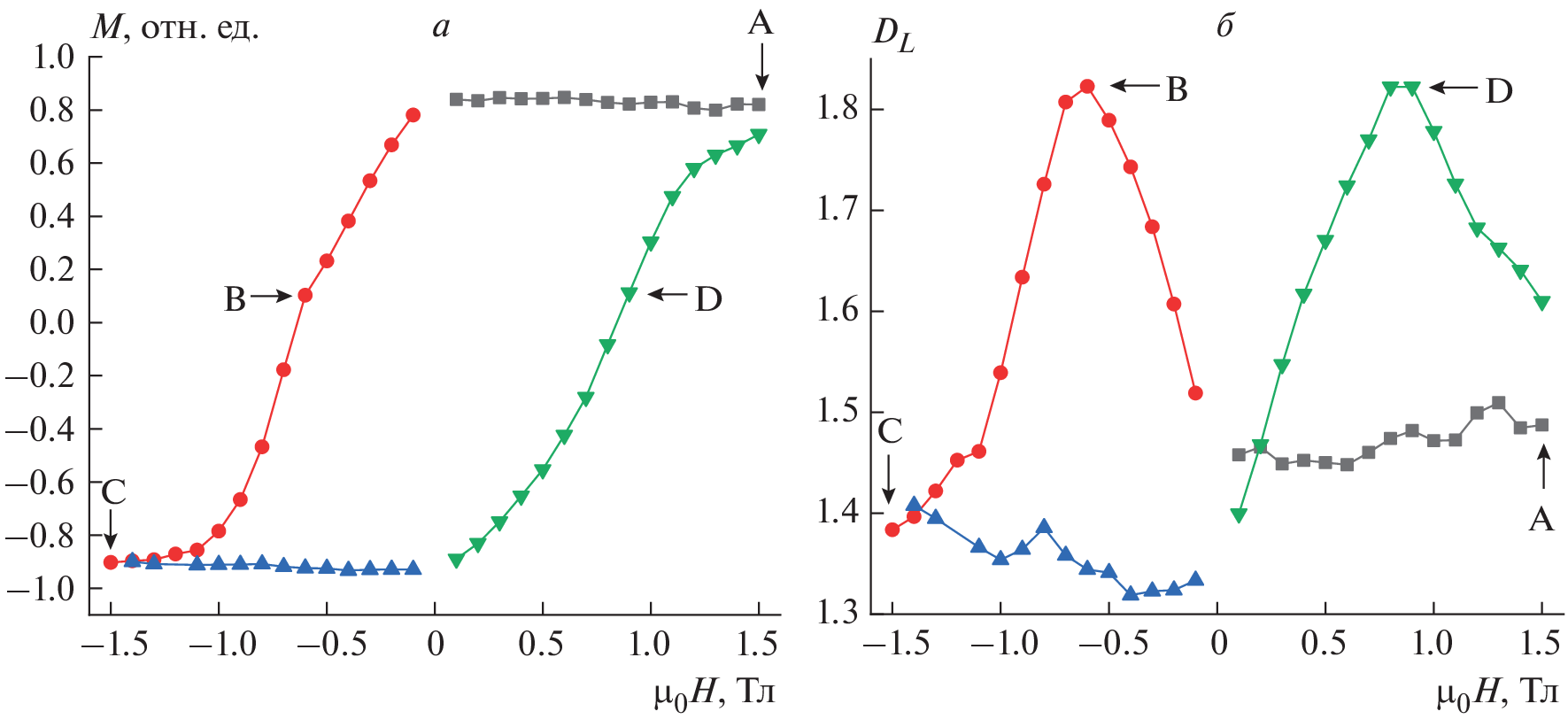 The results of fractal analysis of images of the surface of a permanent magnet KS37, obtained by the method of the polar Kerr effect using an indicator bismuth-containing ferrite-garnet film after magnetization reversal by a pulsed field of 0.1–1.5 T, are presented. The obtained dependences of the residual magnetization on the magnitude of the external pulsed field are compared with the fractal dimension of the magneto-optical images of the magnet surface after exposure to the pulsed field. It is shown that the maximum value of the fractal dimension corresponds to the demagnetized state of the magnet.