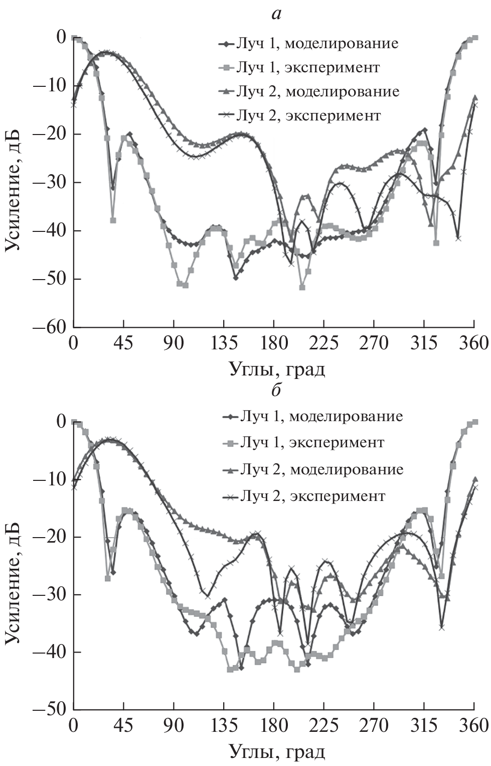A digital synthesis of multibeam radiation pattern is implemented. The parameters and structure of the designed planar antenna array provided isolation between the ports of more than 15 dB. Measurements of the multibeam radiation pattern in the horizontal and vertical radiation planes were carried out.