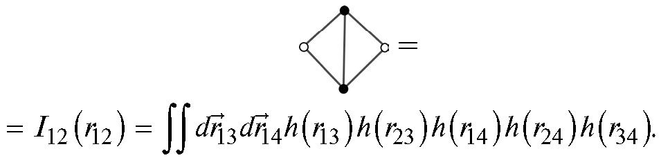 Каждая диаграмма является многомерным интегралом. Линии соответствуют парным корреляционным функциям hij(rij). Черные точки означают умножение на nGi с интегрированием по соответствующей координате . Светлые точки соответствуют аргументам rij. Таким образом, значения бридж-функционалов зависят не только от аргумента rij, но и от распределения плотности в окрестности точек . При решении конкретных задач нелокальные бридж-функционалы заменяют локальной функцией , . Логическое обоснование такой замены отсутствует, тем не менее такой подход до сих пор активно используется и приводит к приближенным интегральным уравнения для парной корреляционной функции h(r12).