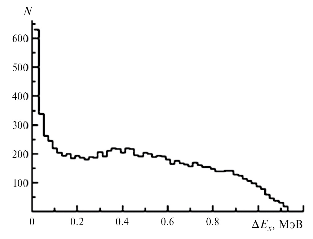 Рис. 3. Спектр ионизационных потерь 6He в реакции n + 9Be → a + 6He при энергии нейтронов 3 МэВ.