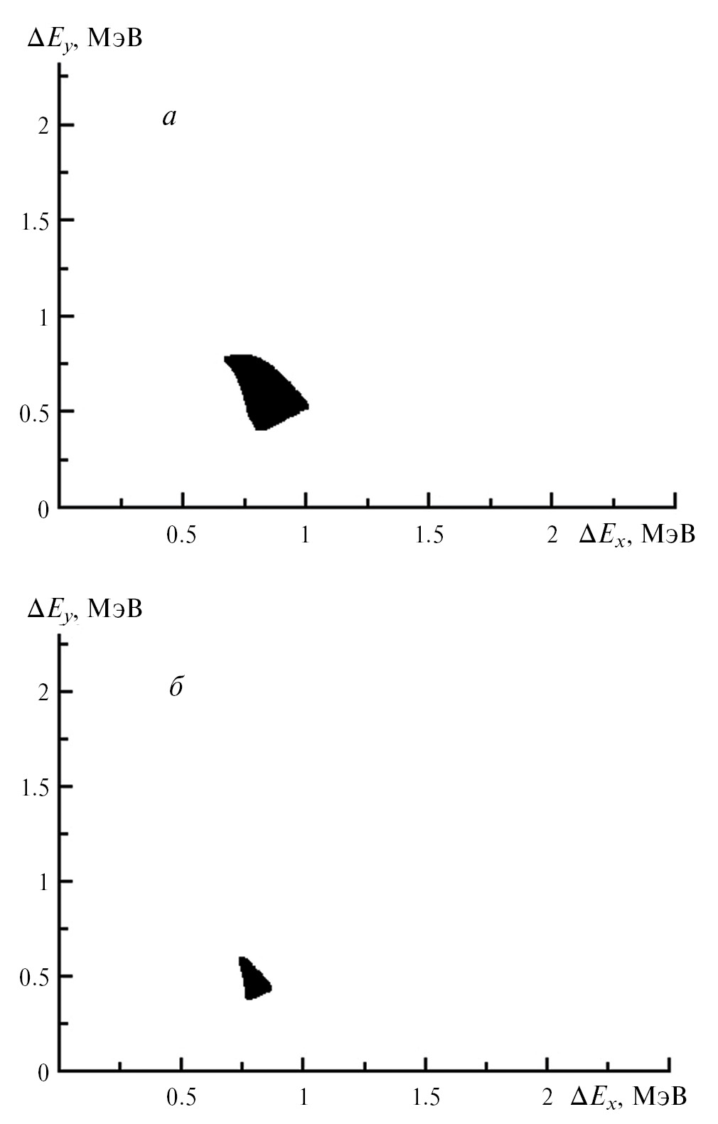 Рис. 4. Корреляция ионизационных потерь 4He при энергии нейтронов 2.5 МэВ (а) и при энергии нейтронов 3 МэВ (б).