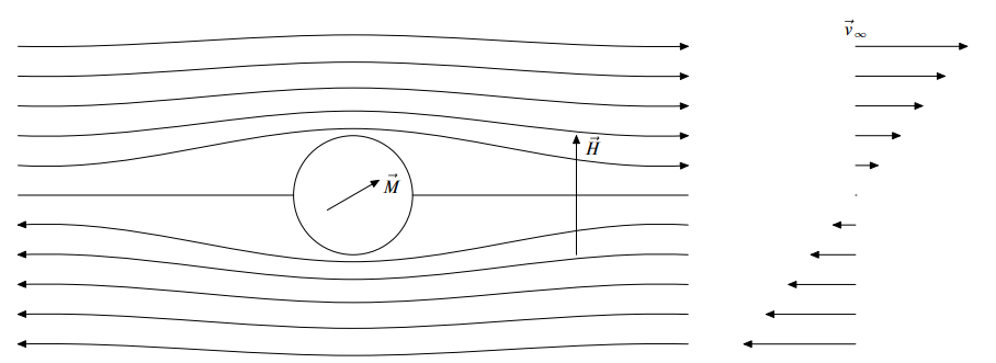 В текущей суспензии , вообще говоря, принимает разные значения в разных точках потока. Если суспензия течет как идеальная жидкость, то , и суспензия намагничивается так, как если бы она была неподвижной.