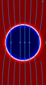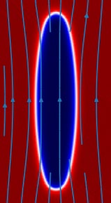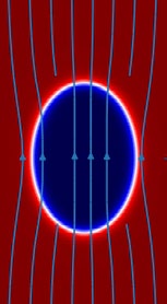 Получены результаты моделирования капли магнитной жидкости в немагнитной при приложении внешнего однородного магнитного поля.