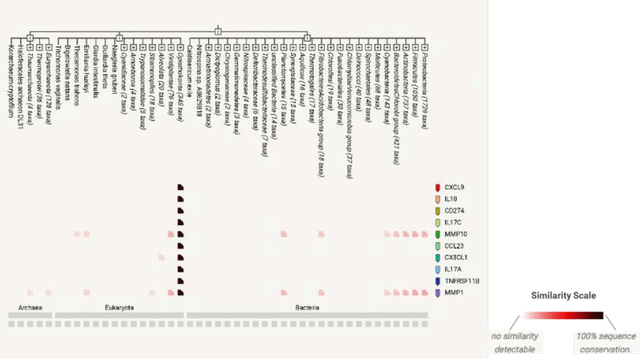 Since immune systems are found in so many different types of species, we needed to determine how the prevalence of these proteins in humans compares to that of other types of organisms. According to the degree of similarity scale, there is a clear similarity between the genes of various creatures.