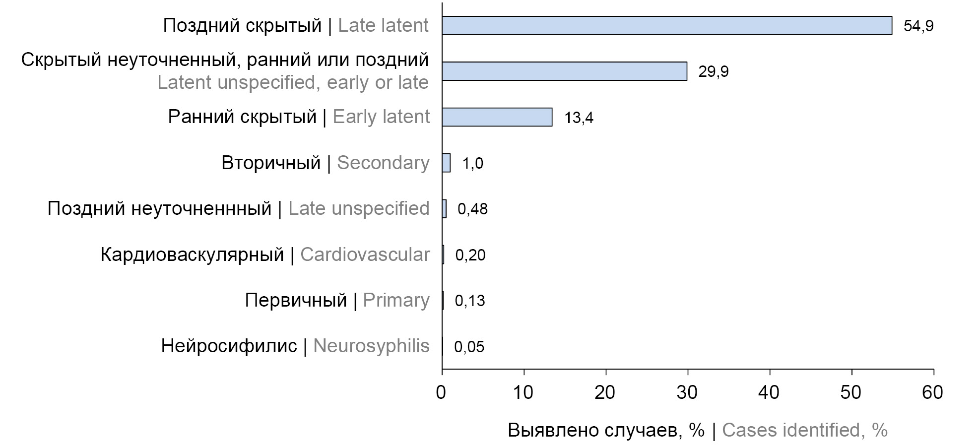 Fig. 3. Forms of syphilis detected in foreign migrant citizens in 2021 (cases identified, %).