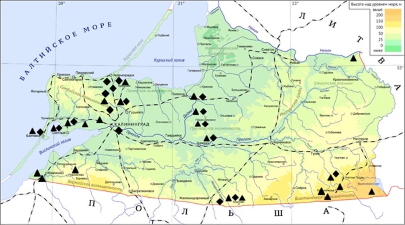 Fig. 1. Locations of biotopes in the Kaliningrad region, where ixodid ticks were collected in 2021–2022.