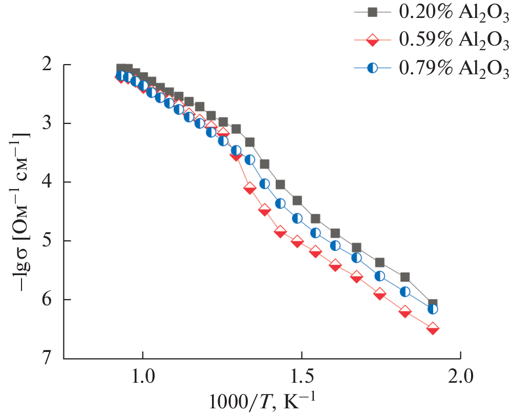 The structure and electrophysical characteristics of Bi4V2 – хFeхO11 – δ (BIFEVOX, where х = 0.3, 0.5) and its heterogeneous mixtures Bi4V2 – хFeхO11 – δ/n% FeOy and Bi4V2 – хFeхO11 – δ/m% Al2O3 are studied by varying their composition and the thermodynamic parameters of the environment. The crystallochemical parameters of individual compounds are calculated. The phase and elemental composition of samples is assessed using the XRD method and the scanning electron microscopy with energy-dispersive spectroscopic microanalysis; for individual phases, the absence of phase transitions is observed. The conductivity of materials is studied by the impedance spectroscopy. No composite effect is observed in these systems.
