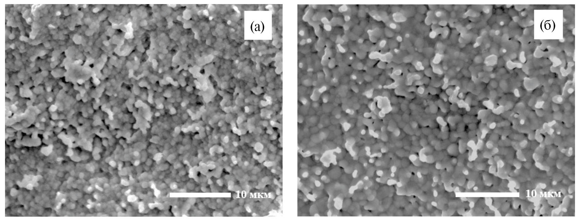 Рис. 5. Микрофотографии слома керамики La0.9Sr0.1Sc0.95Mn0.05O3 – δ (а) и La0.9Sr0.1Sc0.6Mn0.4O3 – δ (б ).