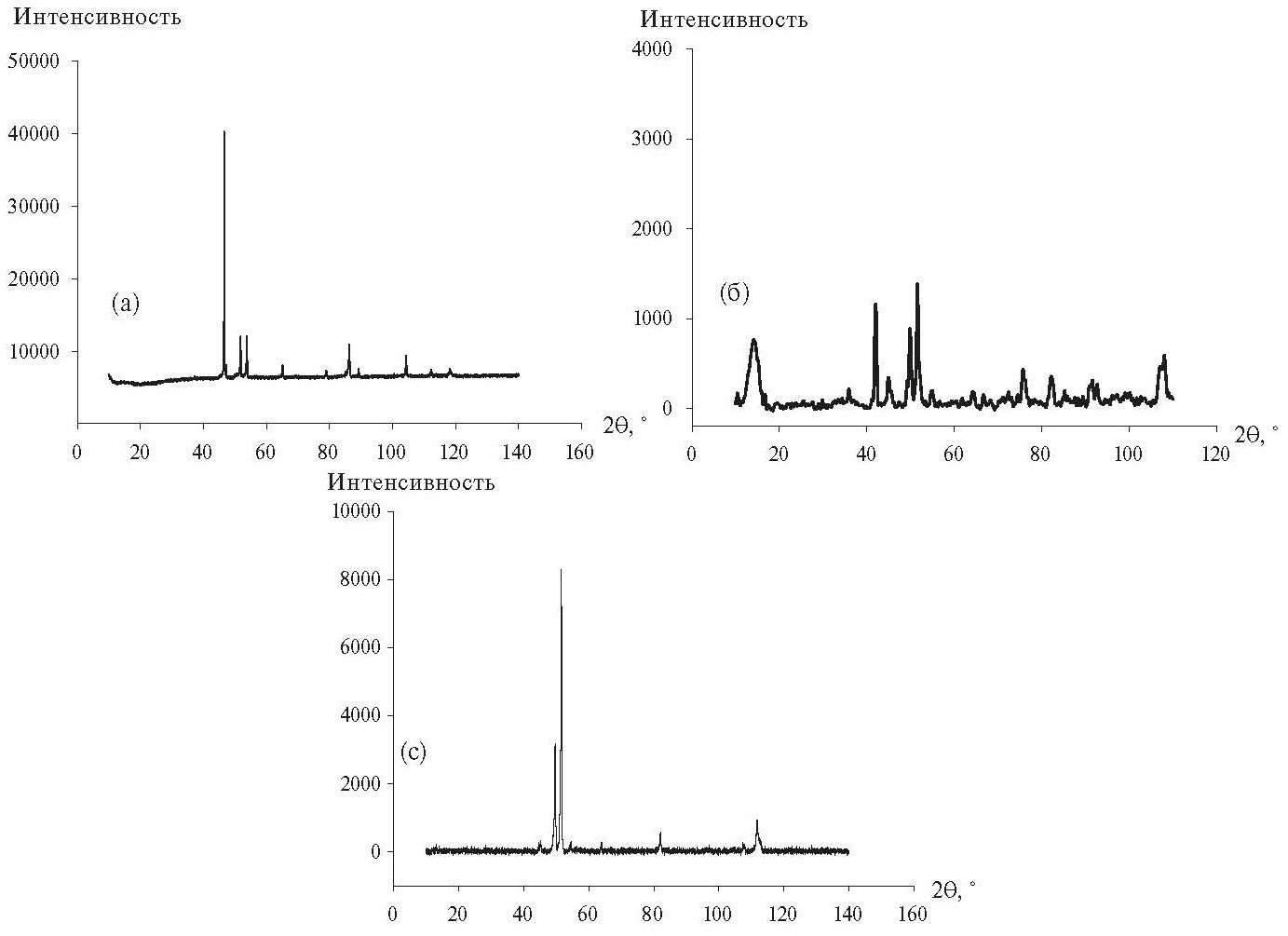 Рис. 1. Дифрактограммы для силицидо-германидов Mn5Si3-0.60Ge0.60 (а), Mn5Si3-2.40Ge2.40 (б) и Mn5Si3-2.85Ge2.85 (в)