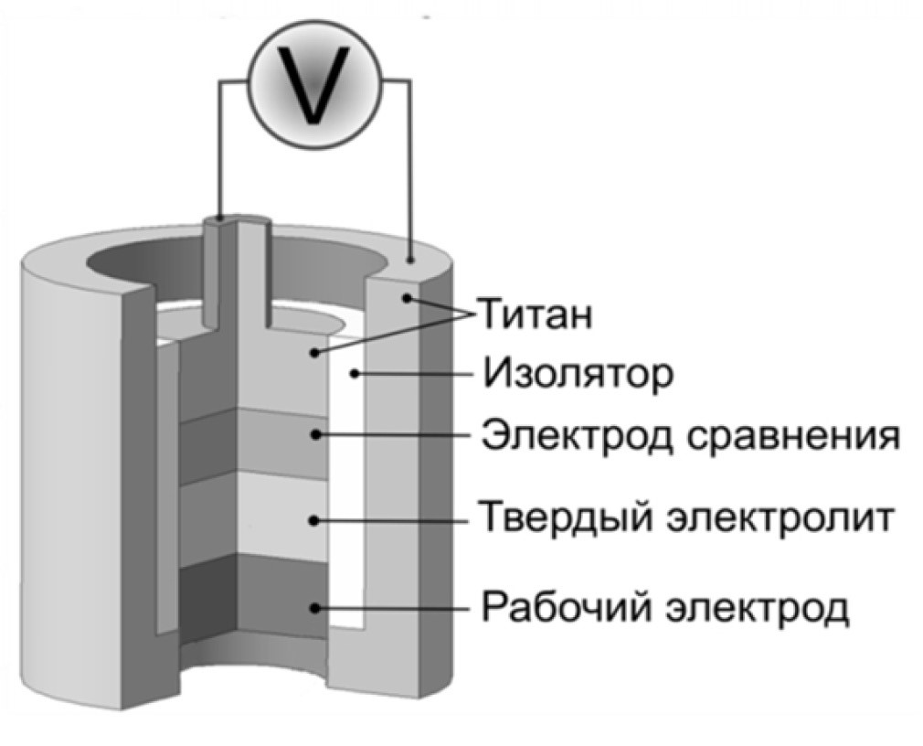 Исследования сенсорных свойств платинированных оксидов титана, допированных рутением, проводили на электрохимических ячейках состава: