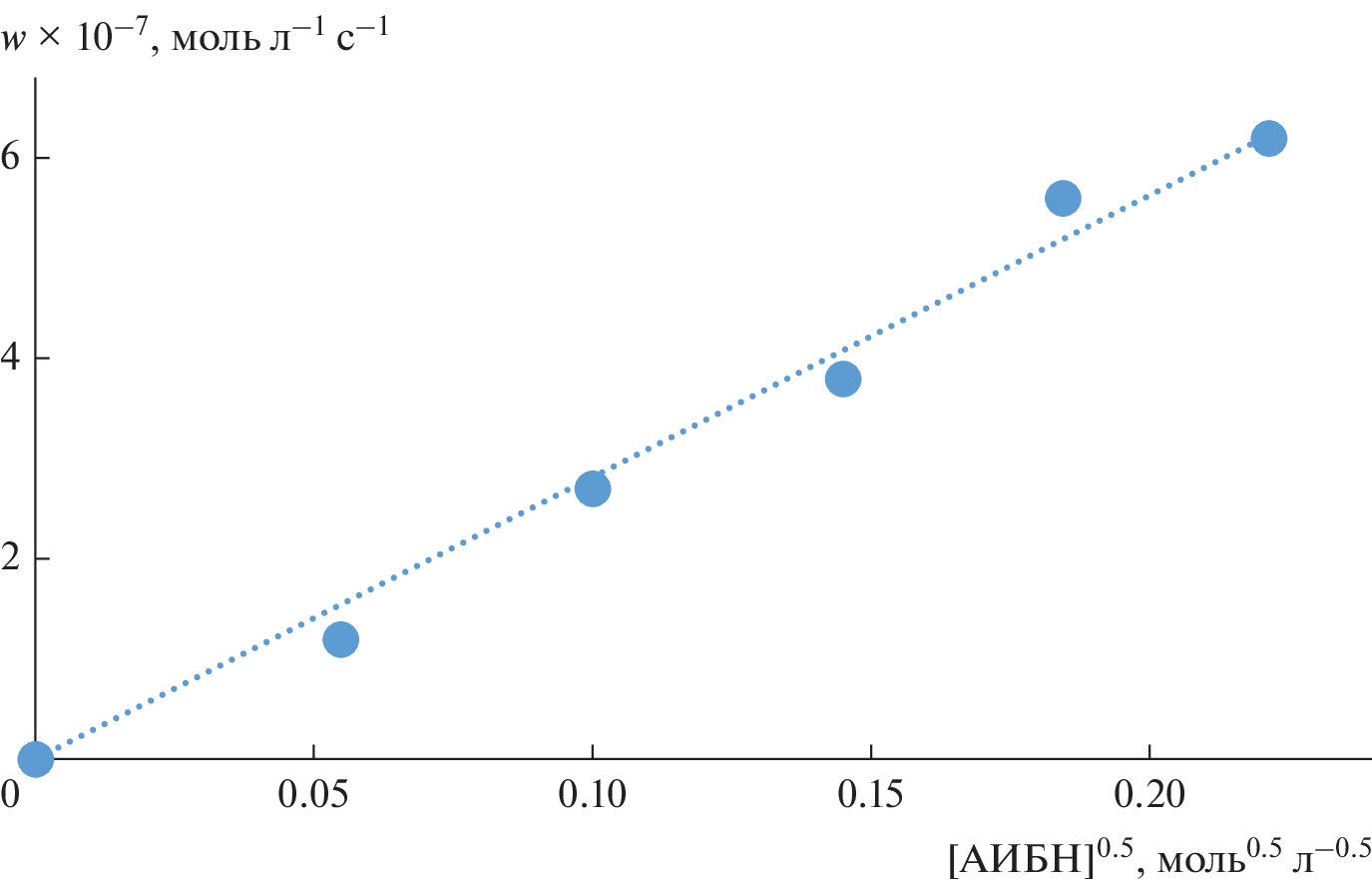 The kinetic of the tetrahydrofuran oxidation initiated by 2,2'-azo-bis-isobutyronitrile in the temperature range 303–323 K are studied. The process rate was been monitored by oxygen absorption. It has shown that the tetrahydrofuran oxidation rate depends linearly on his concentration and proportional to the square root of the initiator concentration. The oxidizability parameter of tetrahydrofuran and the initiation rate constant by 2,2'-azo-bis-isobutyronitrile of the tetrahydrofuran oxidation are found: lg(k2(2k6)–0.5) = 4.3 – 44.1/θ [L0.5 mol–0.5 s–0.5], lg ki = 13.9 − 120.4/θ [s–1], where θ = 2.303 × 10–3RT kJ/mol. The rate constant (k7) of the reaction of the tetrahydrofuran peroxyl radical with α-tocopherol at temperature of 303 K is (4.0 ± 1.1) × 105 L mol–1 s–1.