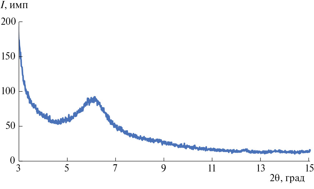 Образование столбчатой глины (PILC) путем внедрения столбиков оксида алюминия в структуру глины подтверждено рентгеноструктурным анализом: на дифрактограмме (рис. 1.) присутствует рефлекс в интервале углов от 5° до 7° (2θ), который, согласно [21], свидетельствует об образовании PILC. Базальное (межслоевое) расстояние составляет около 15 Å. Удельная площадь поверхности – 44 м²/г.