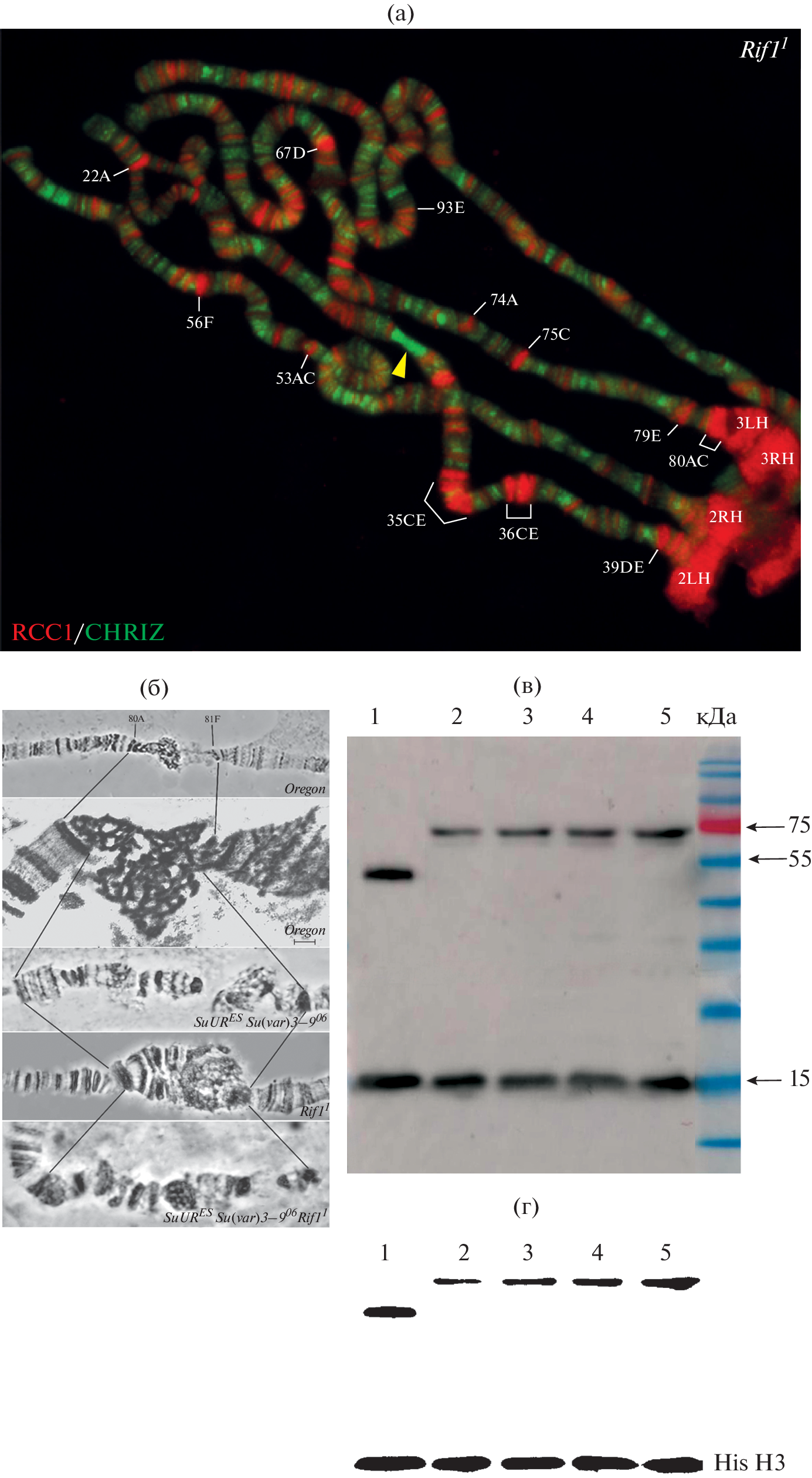 - Frasch M. The maternally expressed Drosophila gene encoding the chromatin-binding protein BJ1 is a homolog of the vertebrate gene Regulator of Chromatin Condensation, RCC1 // EMBO J. 1991. V. 10. P. 1225–1236.