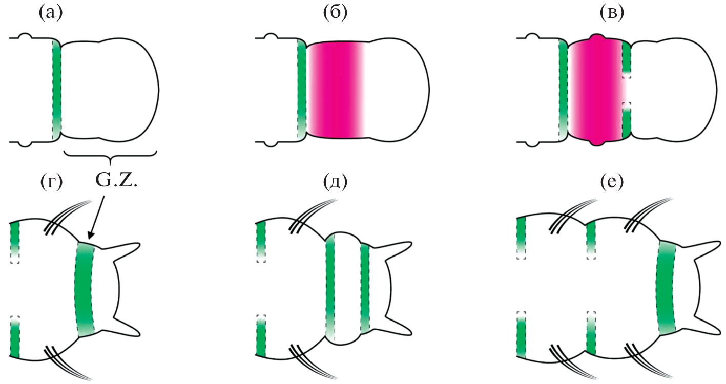 - Williams T.A., Nagy L.M. Linking gene regulation to cell behaviors in the posterior growth zone of sequentially segmenting arthropods // Arthropod Structure & Development. 2017. V. 46. № 3. P. 380–394.