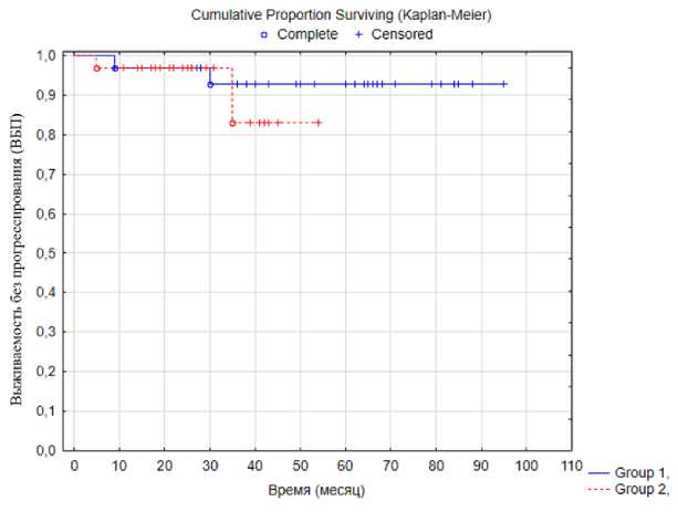 Рис. 2. Выживаемость без прогрессирования в зависимости от типа лечения