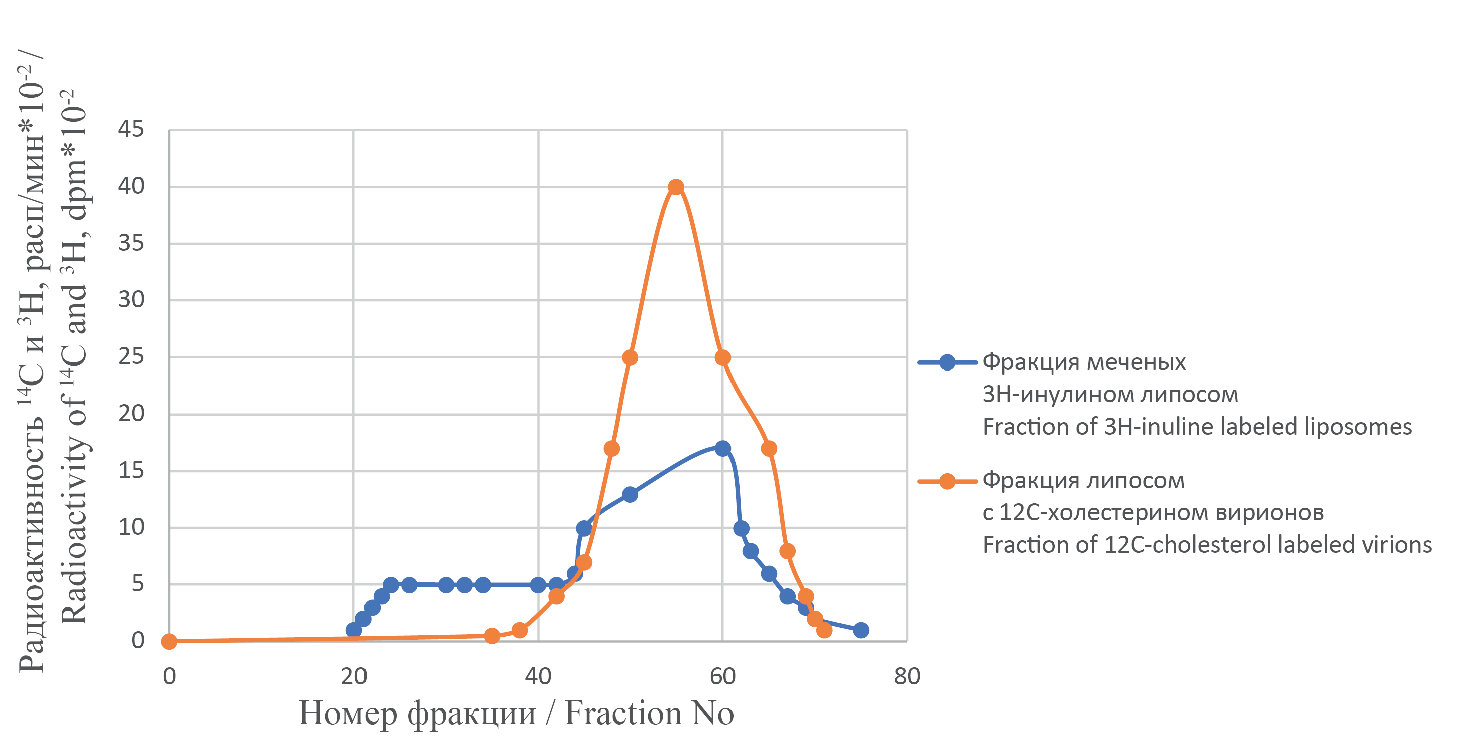 Materials and methods. The extraction process was confirmed by two methods: gel filtration with radioactively labeled liposomes and virions, and by changing the polarization value of the fluorescent probe 1-anilinonaphthalene-8-sulfonate anion (8-ANS) in the viral membrane.