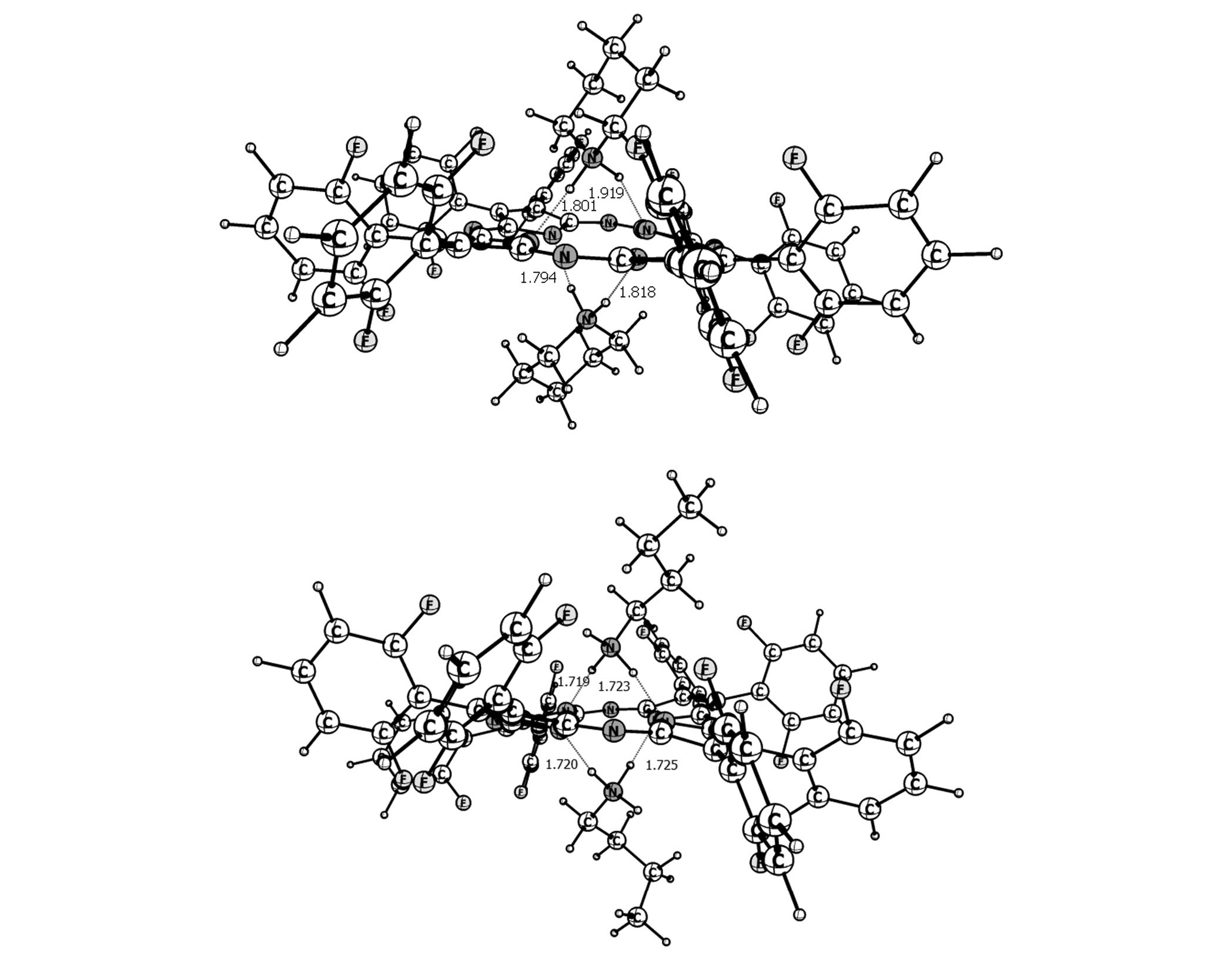 8. Fig. 7. The structure of [Pa(C6H3F2)8]··· [HB]2 with piperidine (a) and n-butylamine (b) optimized by the CAM-B3LYP method