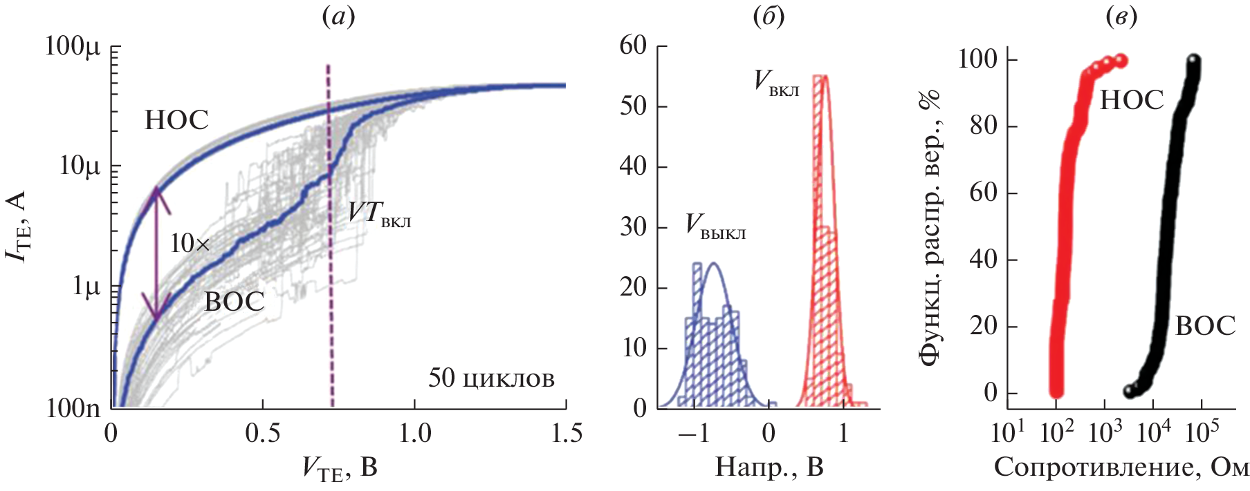 - Yoshida C., Tsunoda K., Noshiro H. High speed resistive switching in Pt/TiO2/TiN film for nonvolatile memory application // Appl. Phys. Lett. 2007. V. 91. № 22. P. 223510.